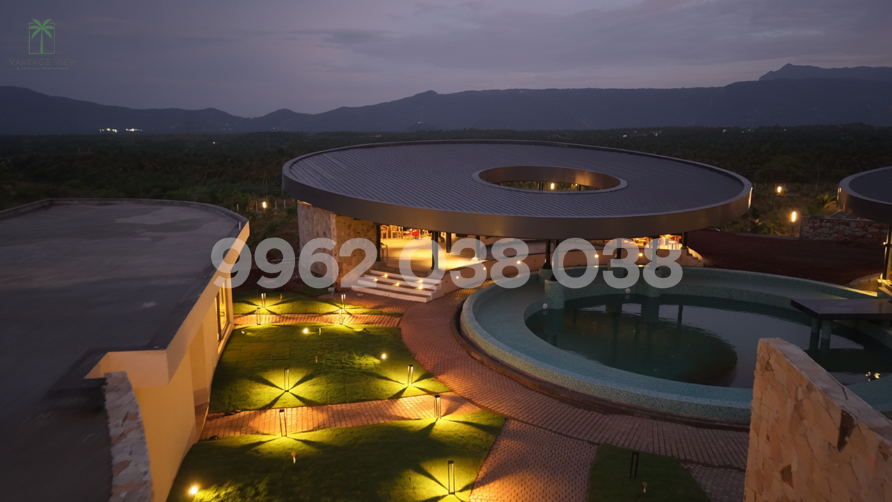 Vantage is a farm land project with a tropical theme located in Karamadai, near Dhayanur in Coimbatore. It offers luxurious villas and plots with modern amenities, including a clubhouse with a resto-bar, a Balinese spa, and a swimming pool. The project is also known as "Vantage - A Tropical Experience".